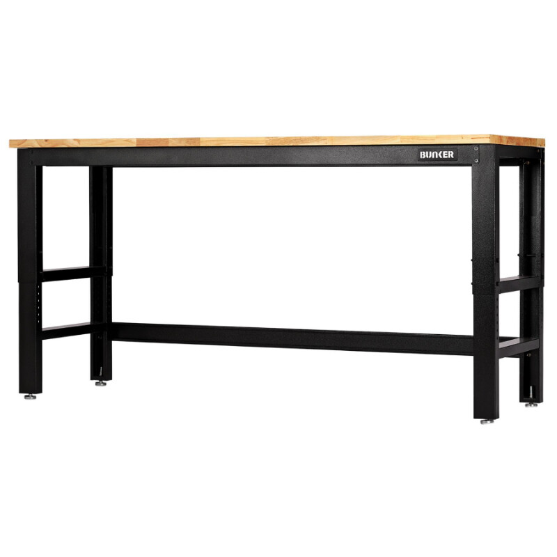 BUNKER Werkbank, in hoogte verstelbaar, met hardhouten werkblad, 183cm