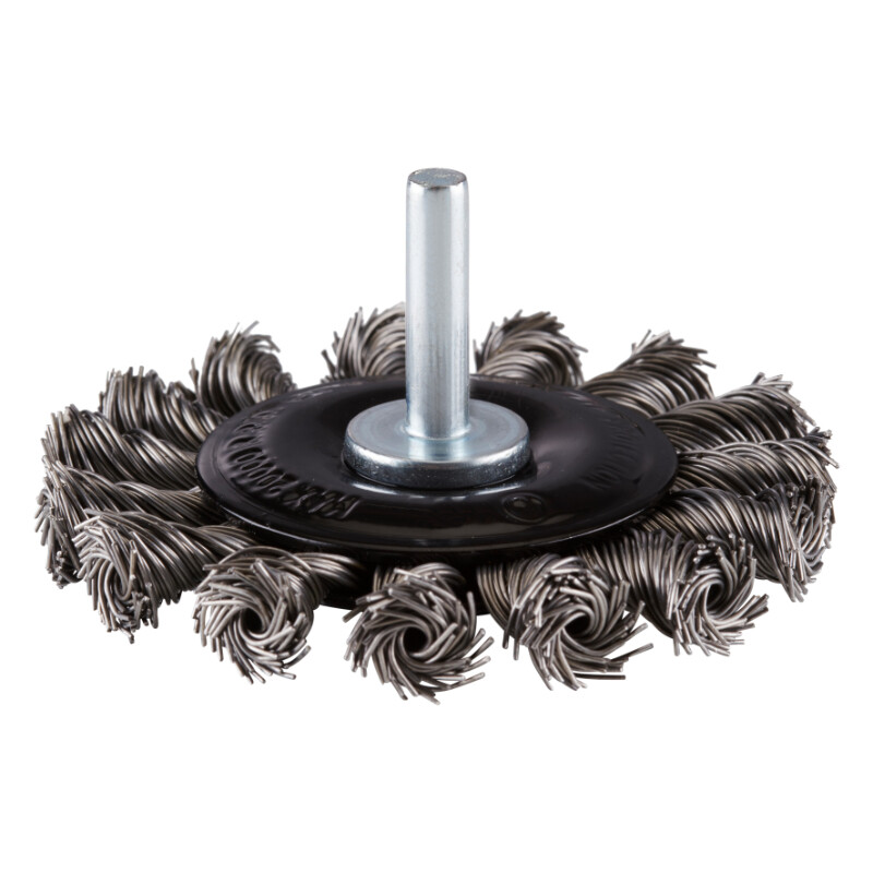 Schijfborstel 75mm, stift 6mm, 20000rpm, gevlochten